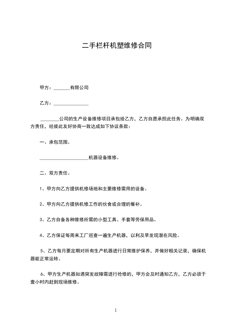 六、乙加工所需要的车床、量具、刀具、夹具、检验设备等其他设备均有乙自己购置,如需甲代制作、代购,乙需按照甲合理提出的价格等金额的支付。甲目前提供的车床从_________月_________日起终止。乙加工所需的原材料有甲提供,乙加工后的副产物(铁屑、铝屑等)由乙作为乙成本计入利润进行核算。