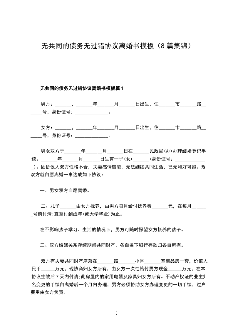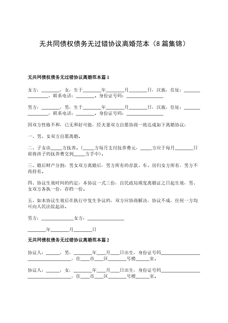 无共同债务无过错离婚协议书怎么写篇8
