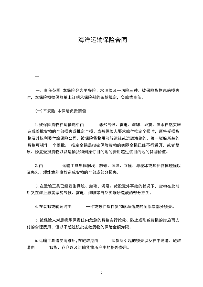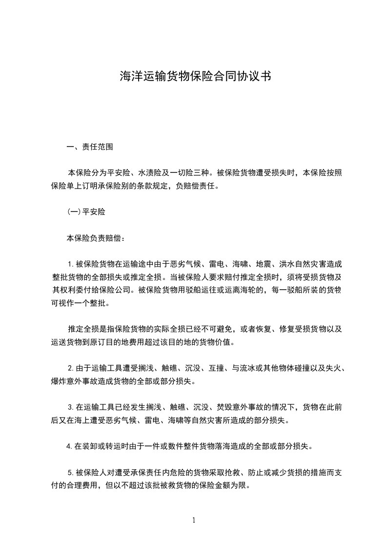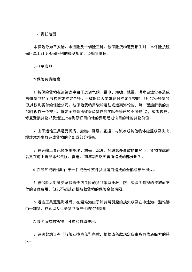 (五)本公司海洋运输货物战争险条款和货物运输罢工险条款规定的责任范围和除外责任。
