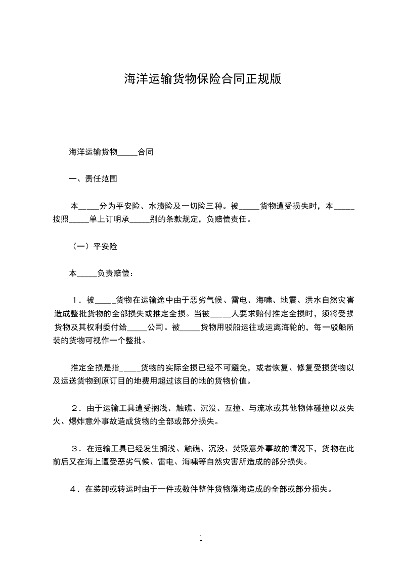 发票号码 保险单号次______保险公司(以下简称本公司)根据__________(以下简称为被保险人)的要求由被保险人向本公司缴付约定的保险费,按照本保险单承保险别和背后所载条款与下列特款承保下述货物运输保险,特立本保险单。