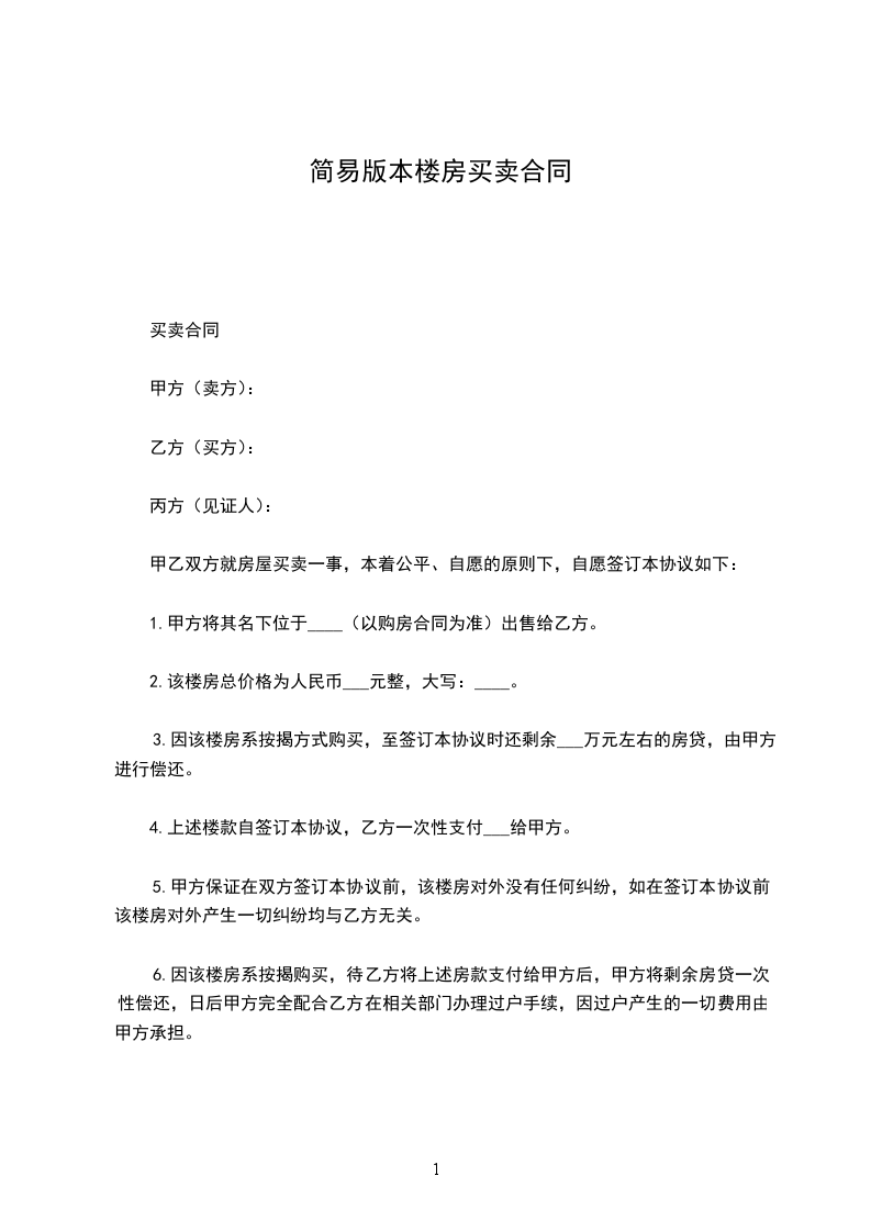 3.因该楼房系按揭方式购买,至签订本协议时还剩余___万元左右的房贷,由甲方进行偿还。