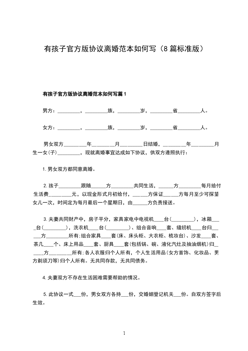 男女双方_________年_________月_________日结婚,_________年_________月生一女(子)_________,现就离婚事宜达成如下协议,供双方遵照执行: