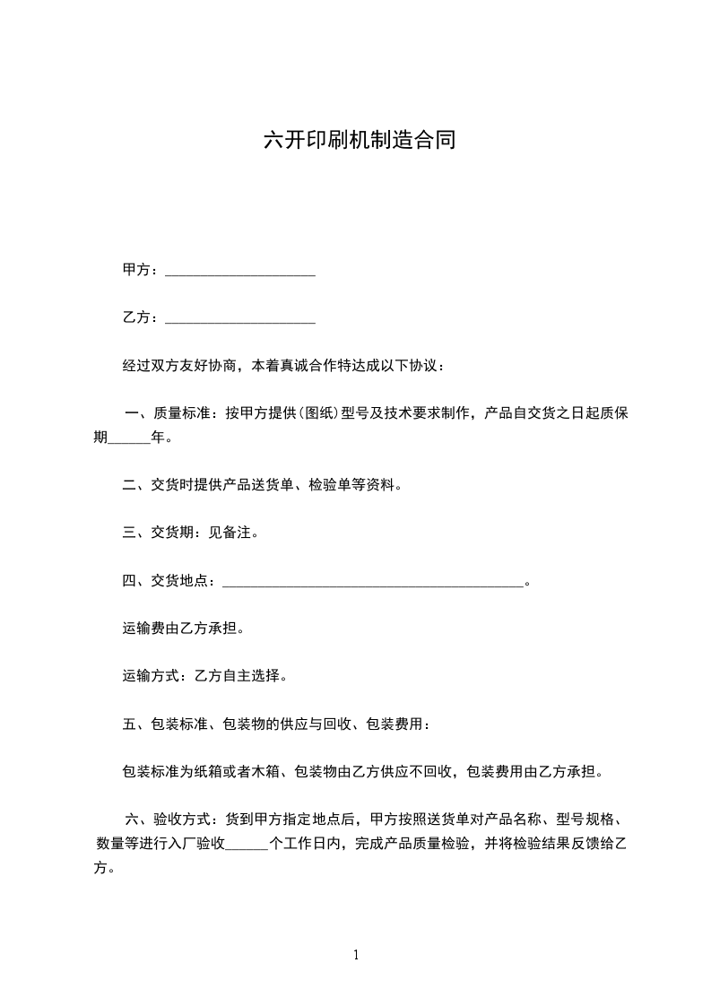 一、质量标准:按甲方提供(图纸)型号及技术要求制作,产品自交货之日起质保期______年。