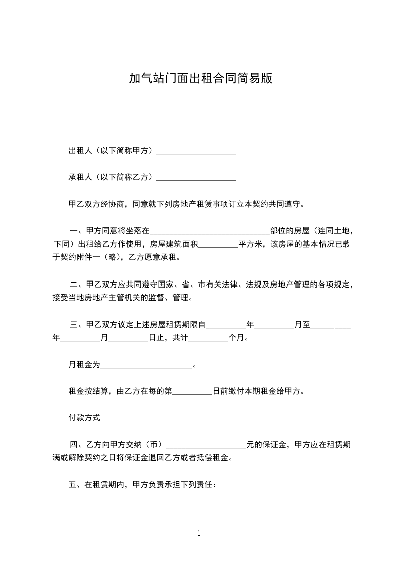 加气站门面出租合同简易版