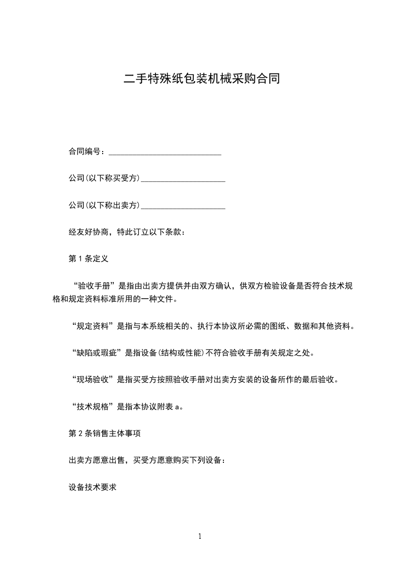 出卖方应在_________年_________月_________日前完成设备的安装和调试工作;并完成验收手册所规定的各项检测;同时,出卖方须在设备验收单证上签字,证明业已完成检测。验收单证上应注明双方认可的,且应由出卖方在双方议定的期间内校正的仍可能存在的缺陷。