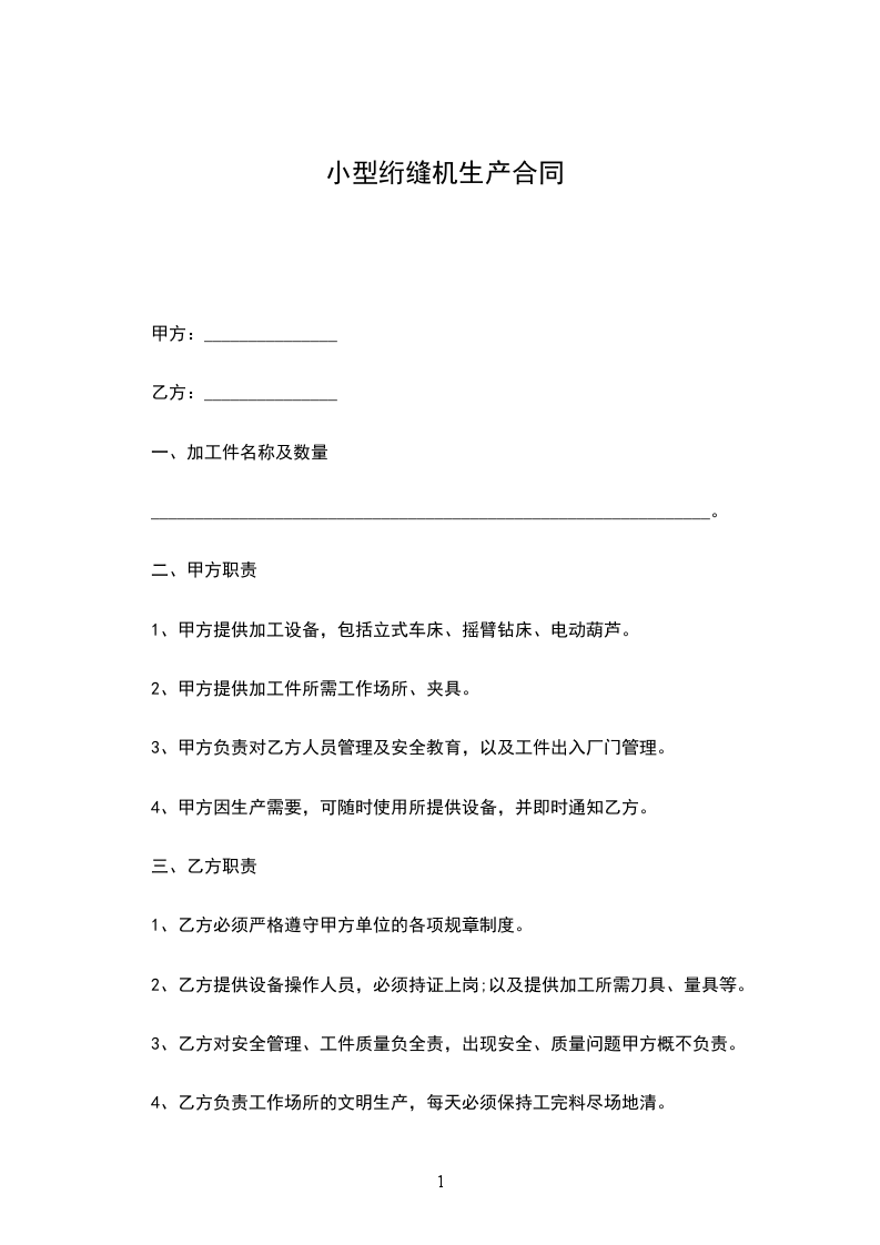 第一条:甲方接受乙方的委托生产加工以下产品