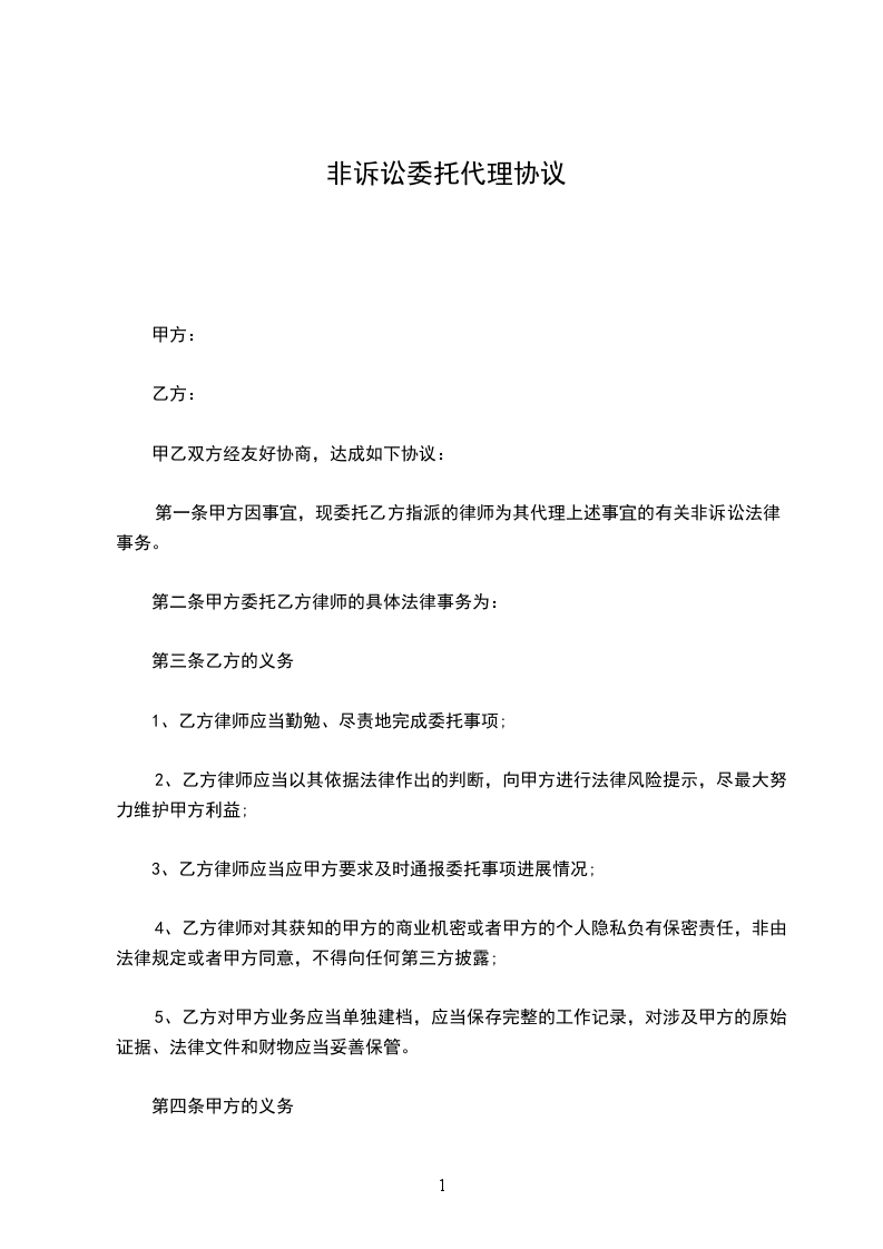 1、认真、勤勉地为甲方提供本协议第二条范围内的服务,依法切实维护甲方的利益;