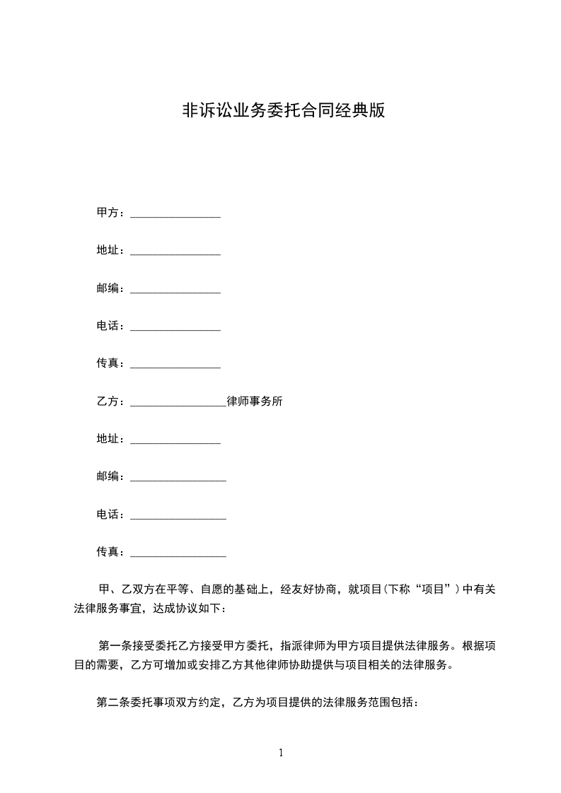 第一条接受委托乙方接受甲方委托,指派律师为甲方项目提供法律服务。根据项目的需要,乙方可增加或安排乙方其他律师协助提供与项目相关的法律服务。