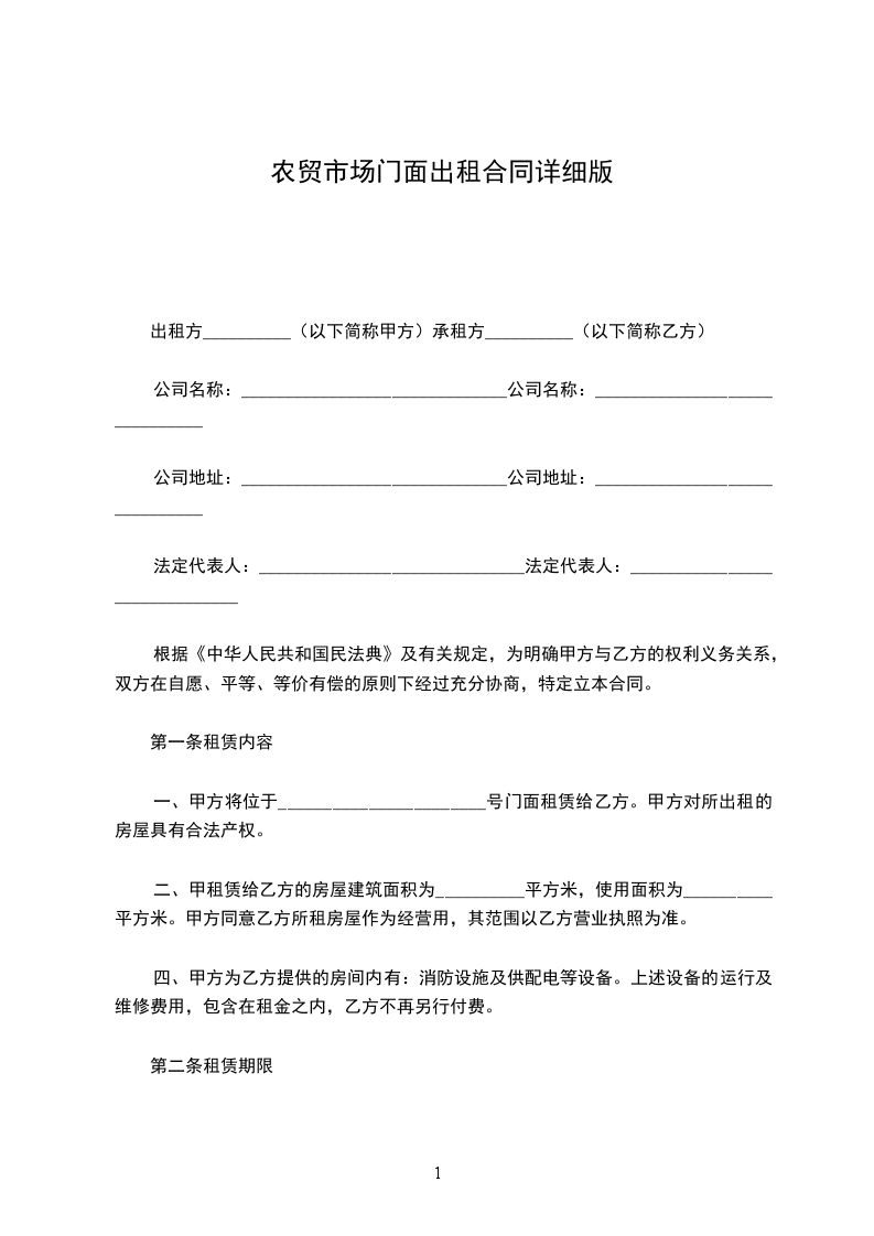 1.甲方将其合法拥有的座落于________________街______________招待所以__________门面房小间出租给乙方用于经营。该门面建筑面积共______________平方米;