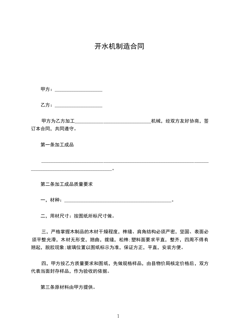 一、质量标准:按甲方提供(图纸)型号及技术要求制作,产品自交货之日起质保期______年。