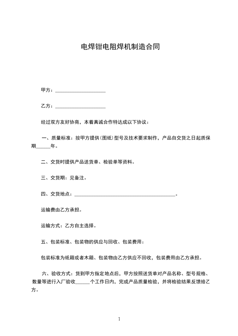 一、质量标准:按甲方提供(图纸)型号及技术要求制作,产品自交货之日起质保期______年。