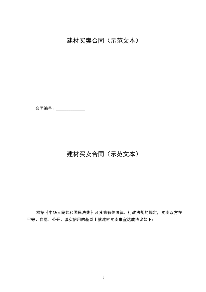 根据《中华人民共和国民法典》及其他有关法律、行政法规的规定,买卖双方在平等、自愿、公开、诚实信用的基础上就建材买卖事宜达成协议如下: