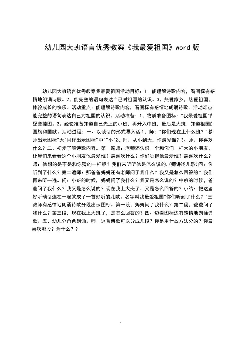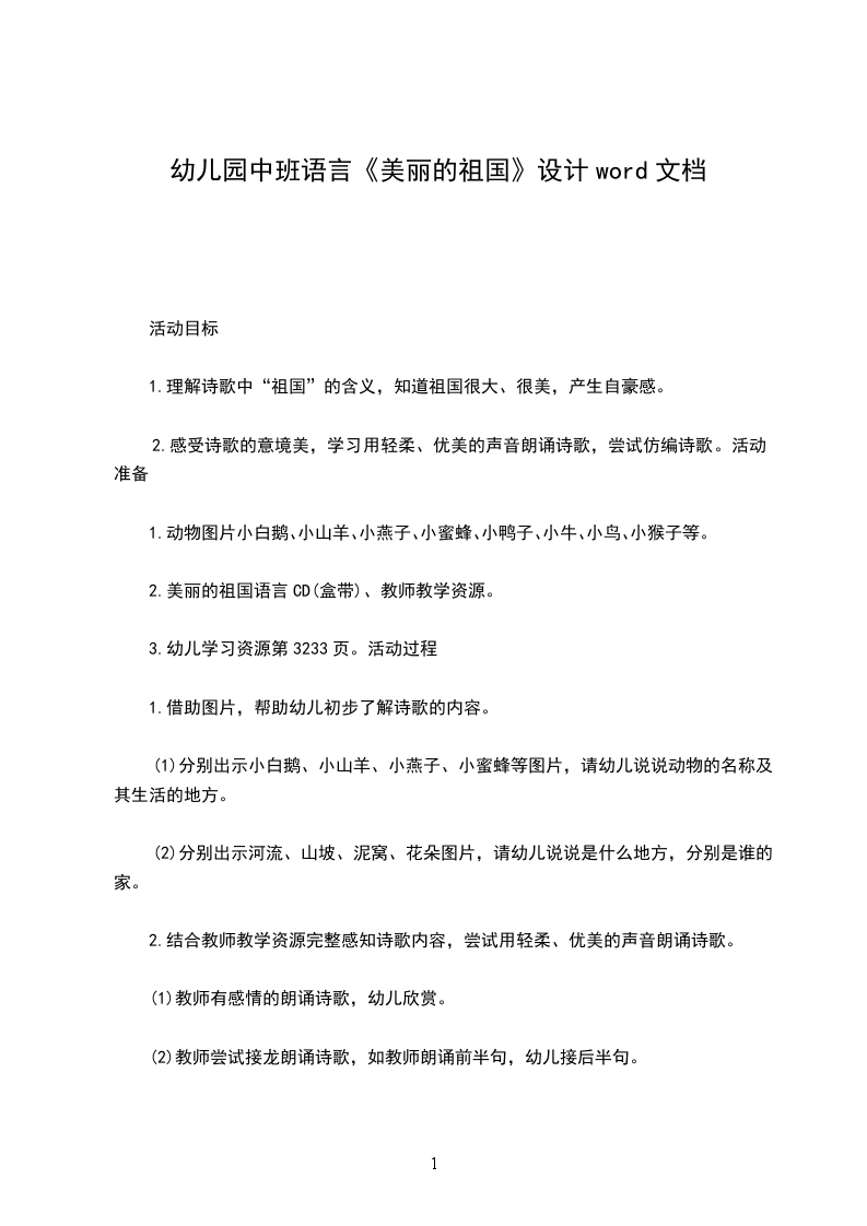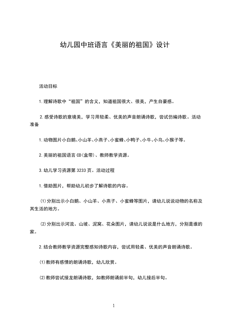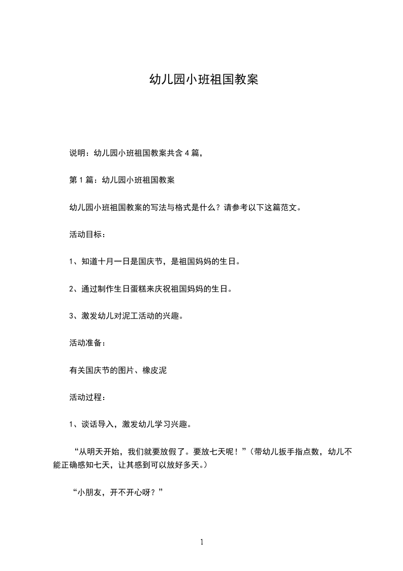 幼儿园小班祖国教案的写法与格式是什么?请参考以下这篇范文。