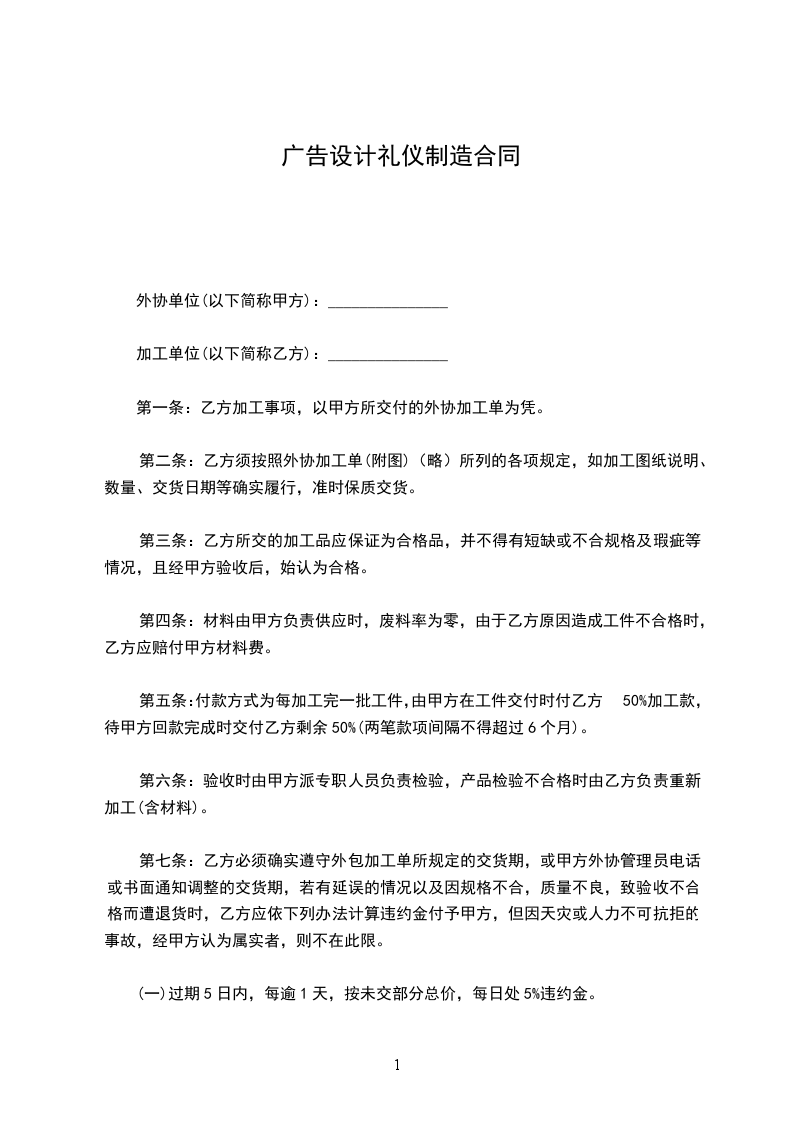 5、超过合同规定日期付款,应当比照中国人民银行有关延期付款的规定向承揽方偿付违约金;以酬金计算的,每逾期一天,按酬金总额的千分之一偿付违约金。