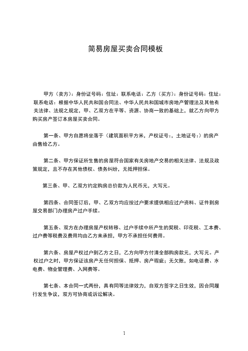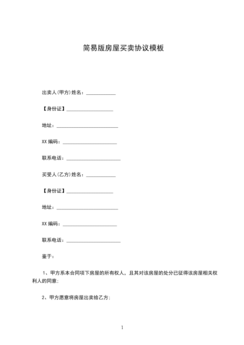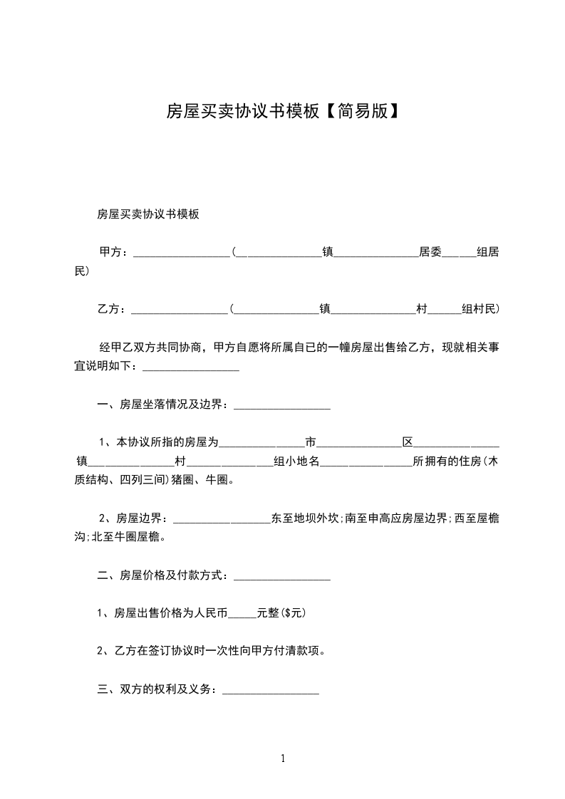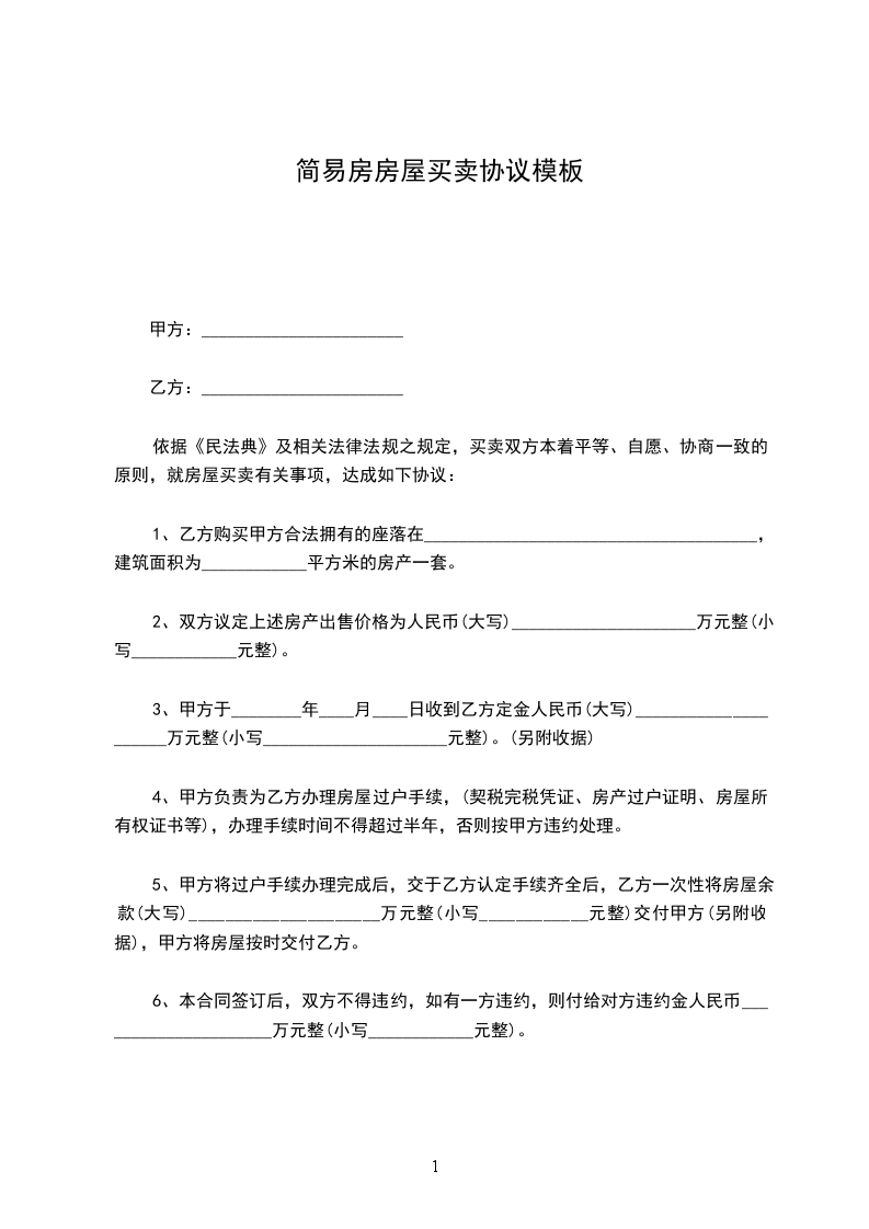 甲乙双方经过有好协商,就房屋买卖一事,在平等、自愿、诚实守信的前提下,达成如下协议:_________________