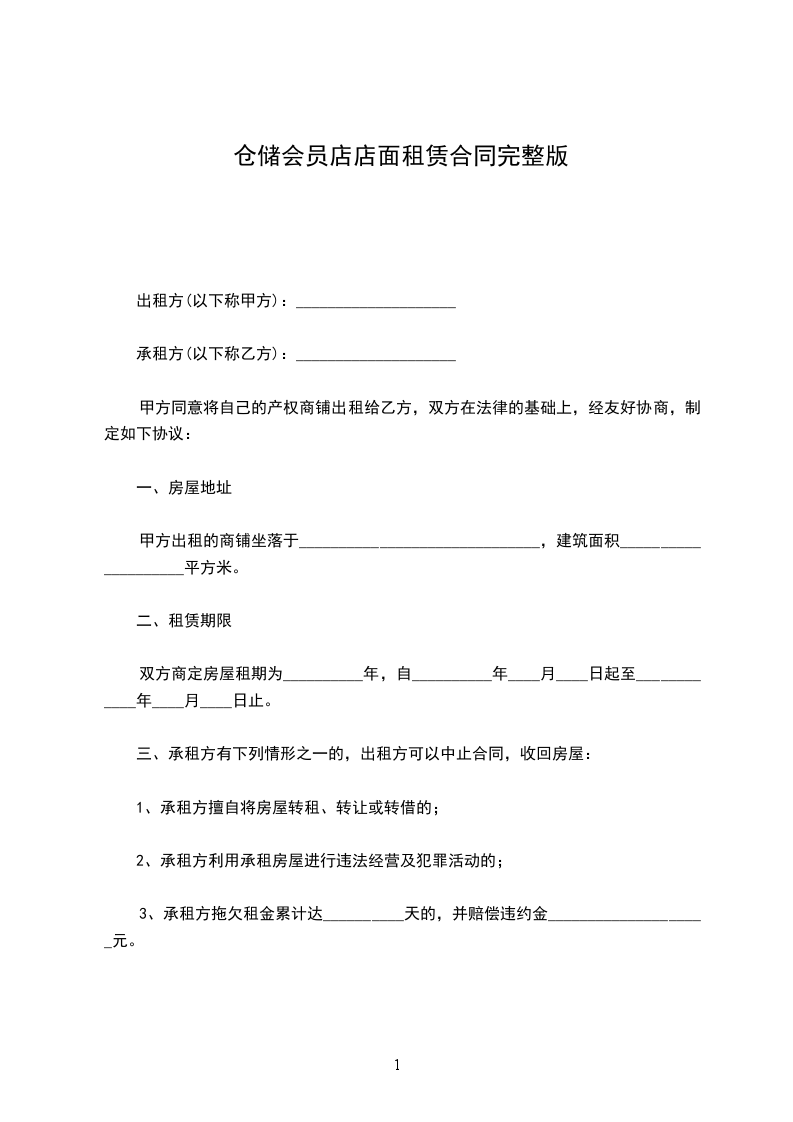 1、若出租方在承租方没有违反本合同的情况下提前解除合同或租给他人,视为甲方违约,负责赔偿违约金____________________元。