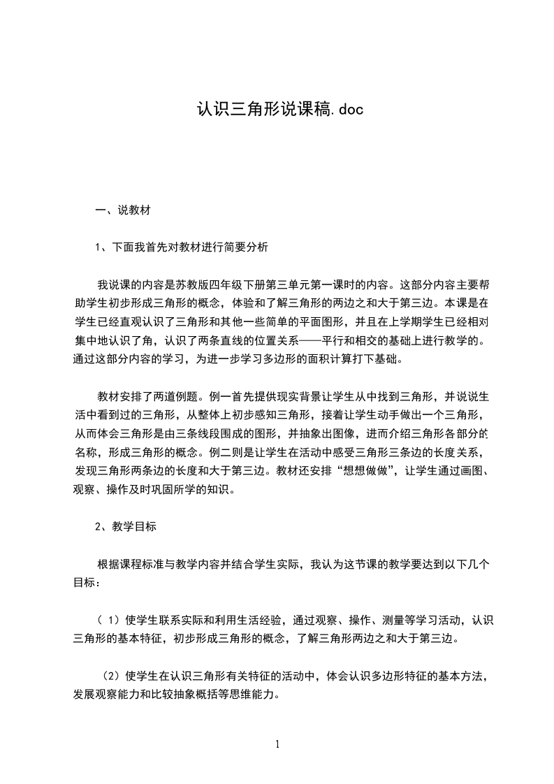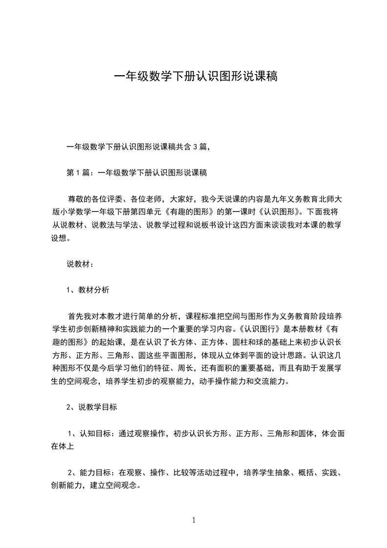 一年级数学下册认识图形说课稿共含3篇,