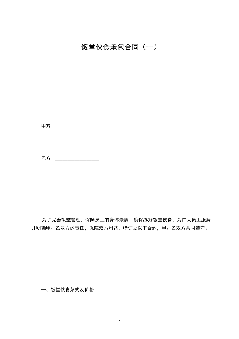 为了完善饭堂管理,保障员工的身体素质,确保办好饭堂伙食,为广大员工服务,并明确甲、乙双方的责任,保障双方利益,特订立以下合约,甲、乙双方共同遵守。