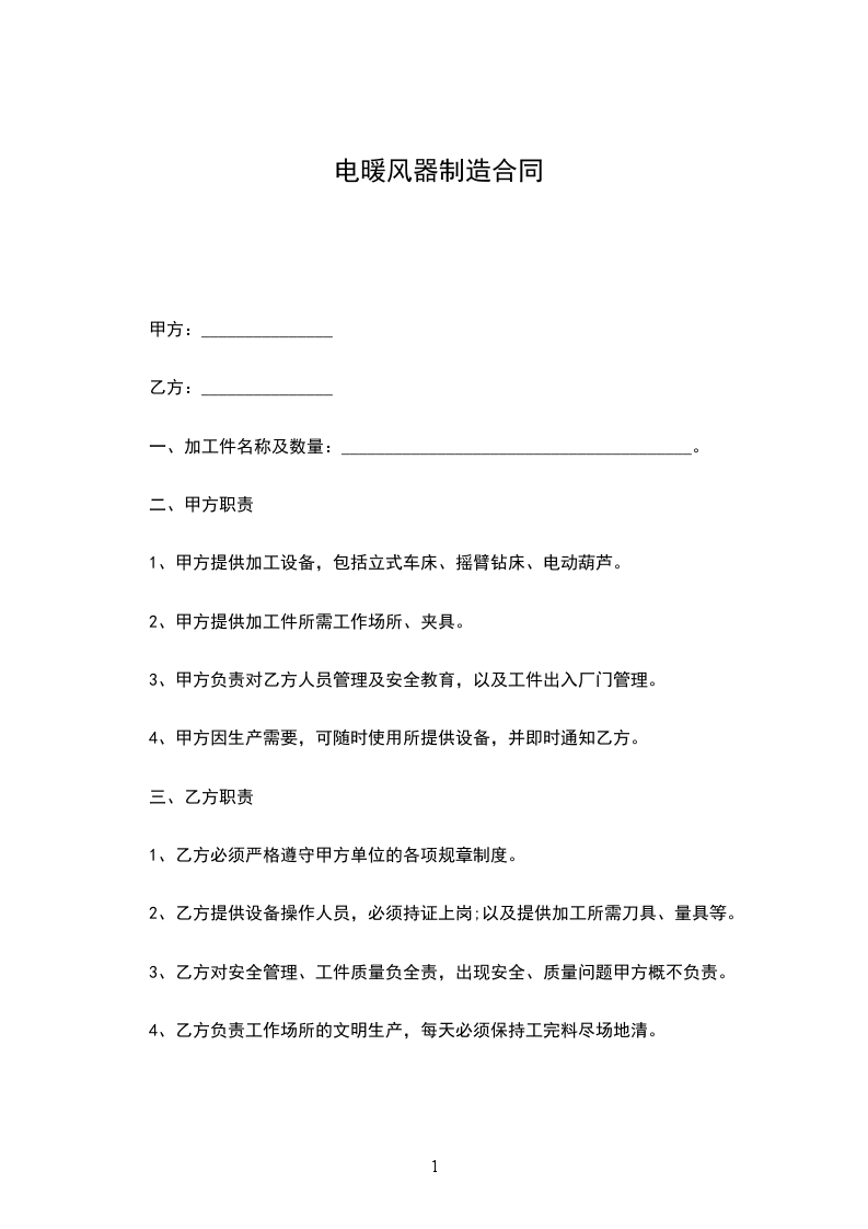 1、甲方提供加工设备,包括立式车床、摇臂钻床、电动葫芦。
