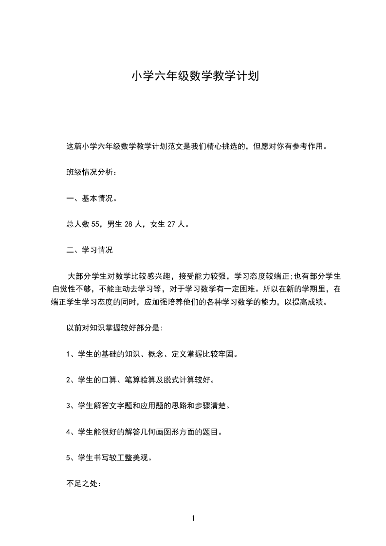 这篇小学六年级数学教学计划范文是我们精心挑选的,但愿对你有参考作用。