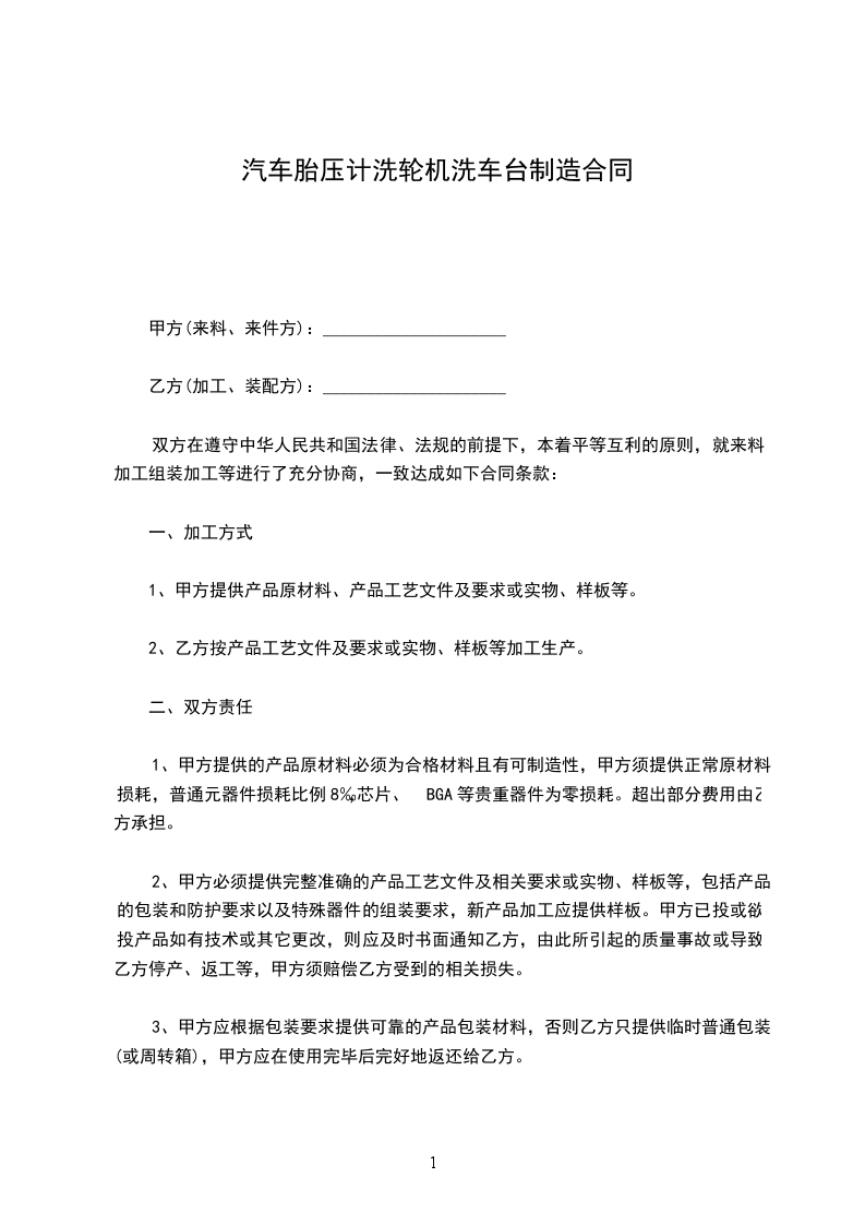 乙方(加工、装配方):_____________________