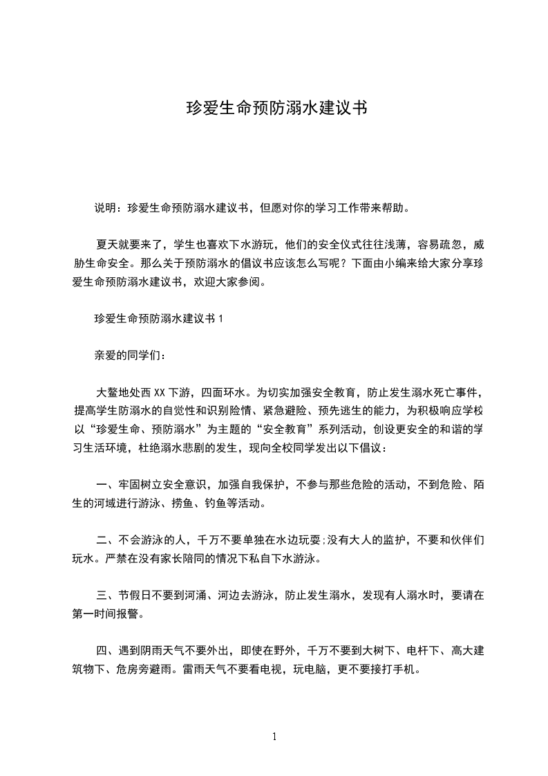 说明:珍爱生命预防溺水建议书,但愿对你的学习工作带来帮助。