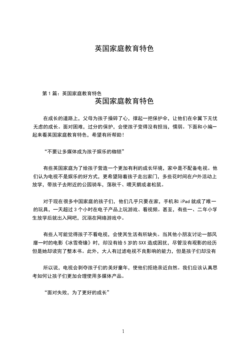 这个网站英国家庭教育特色范文很有深度,希望可以助您一臂之力。