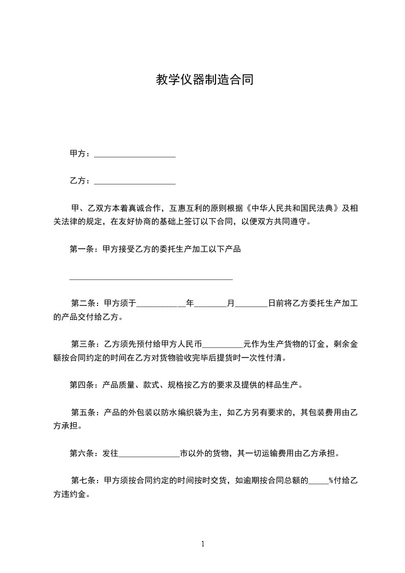 第七条:甲方须按合同约定的时间按时交货,如逾期按合同总额的_____%付给乙方违约金。