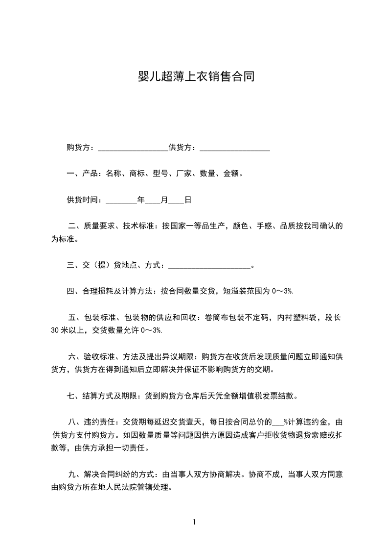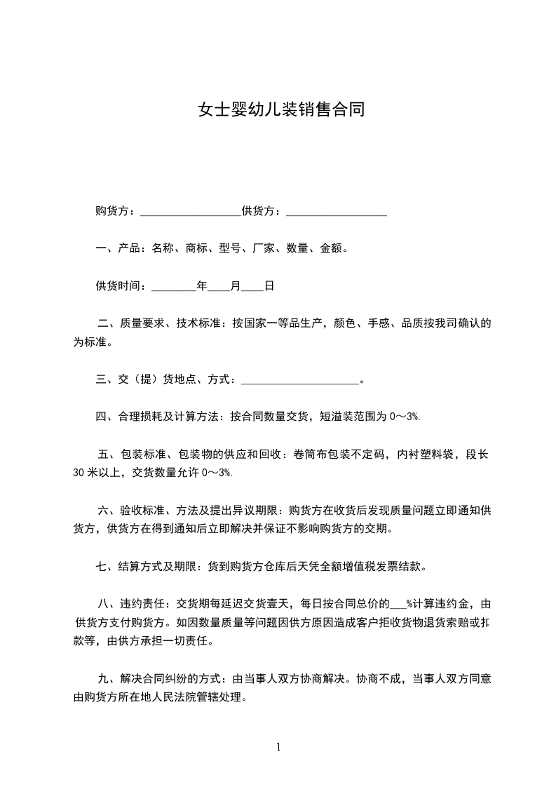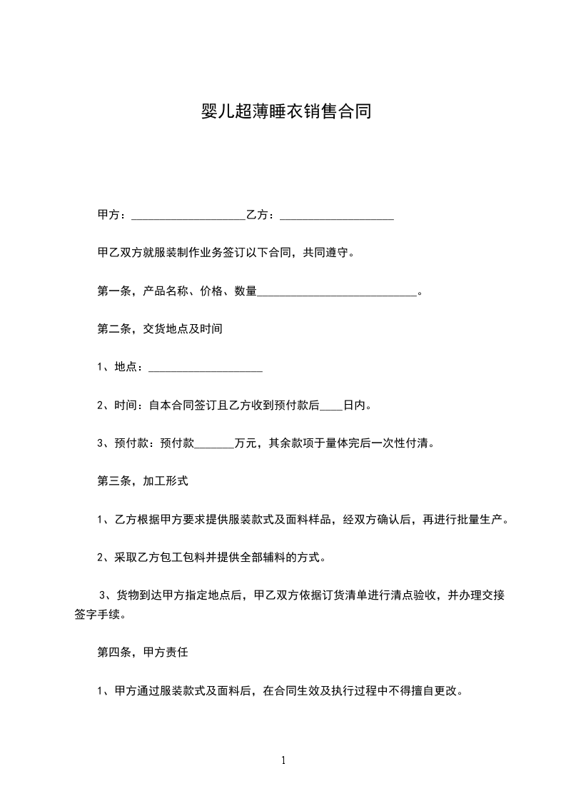10、甲方的销售指标定为童床_________套/每月,或沙发_________对/每月。对达到销售指标的经销商,乙方每年组织一次培训,甲方来回车费、食宿费、培训费均由乙方承担;并发给甲方产品经销铜牌。