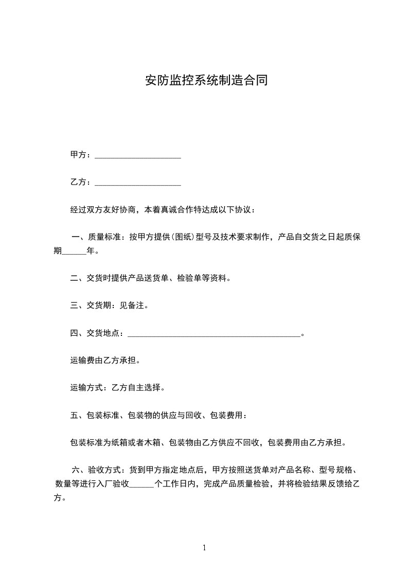 一、质量标准:按甲方提供(图纸)型号及技术要求制作,产品自交货之日起质保期______年。
