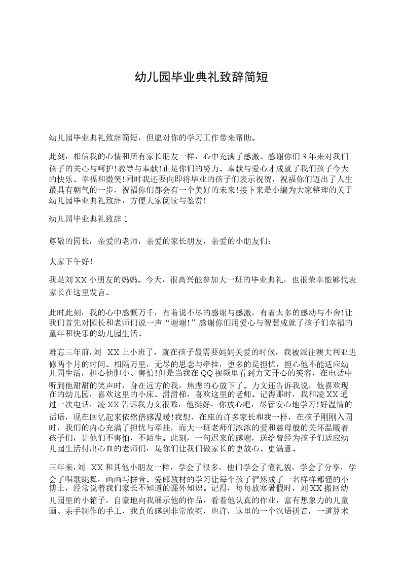 幼儿园毕业典礼致辞简短,但愿对你的学习工作带来帮助。