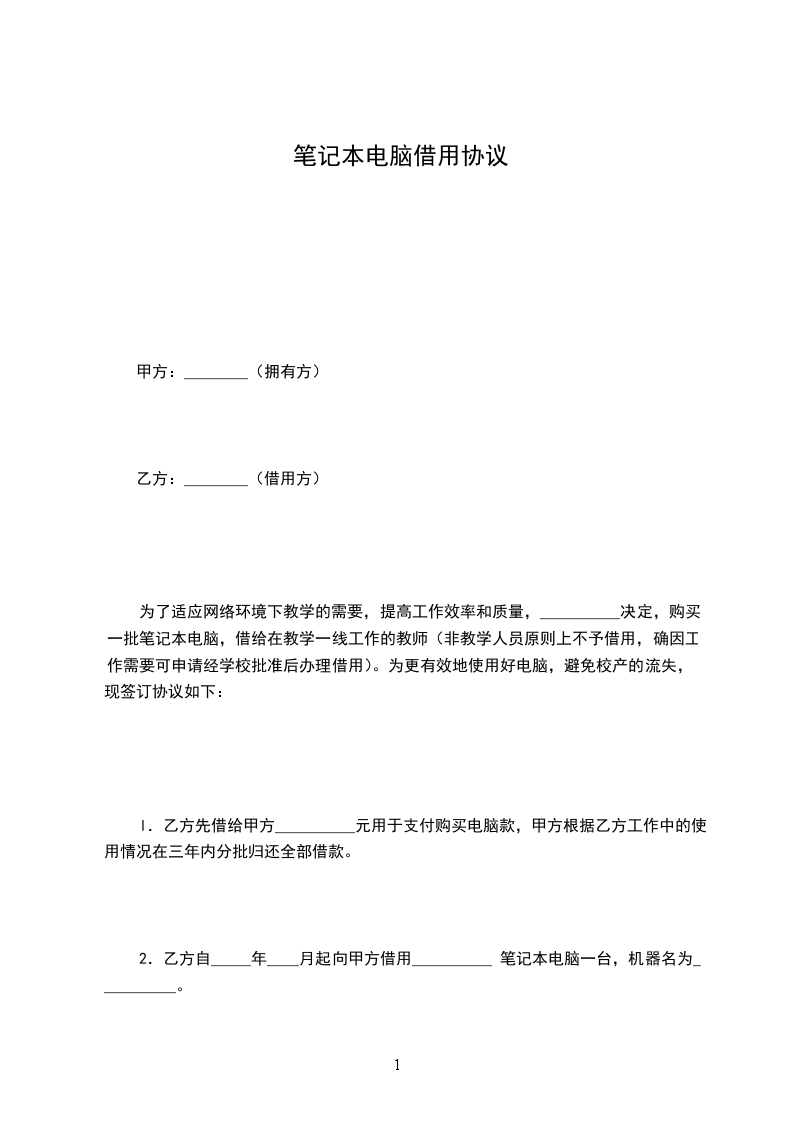 2.乙方自_____年____月起向甲方借用__________ 笔记本电脑一台,机器名为__________。