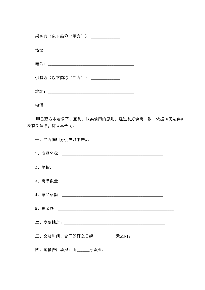 供货方(以下简称“乙方”):______________