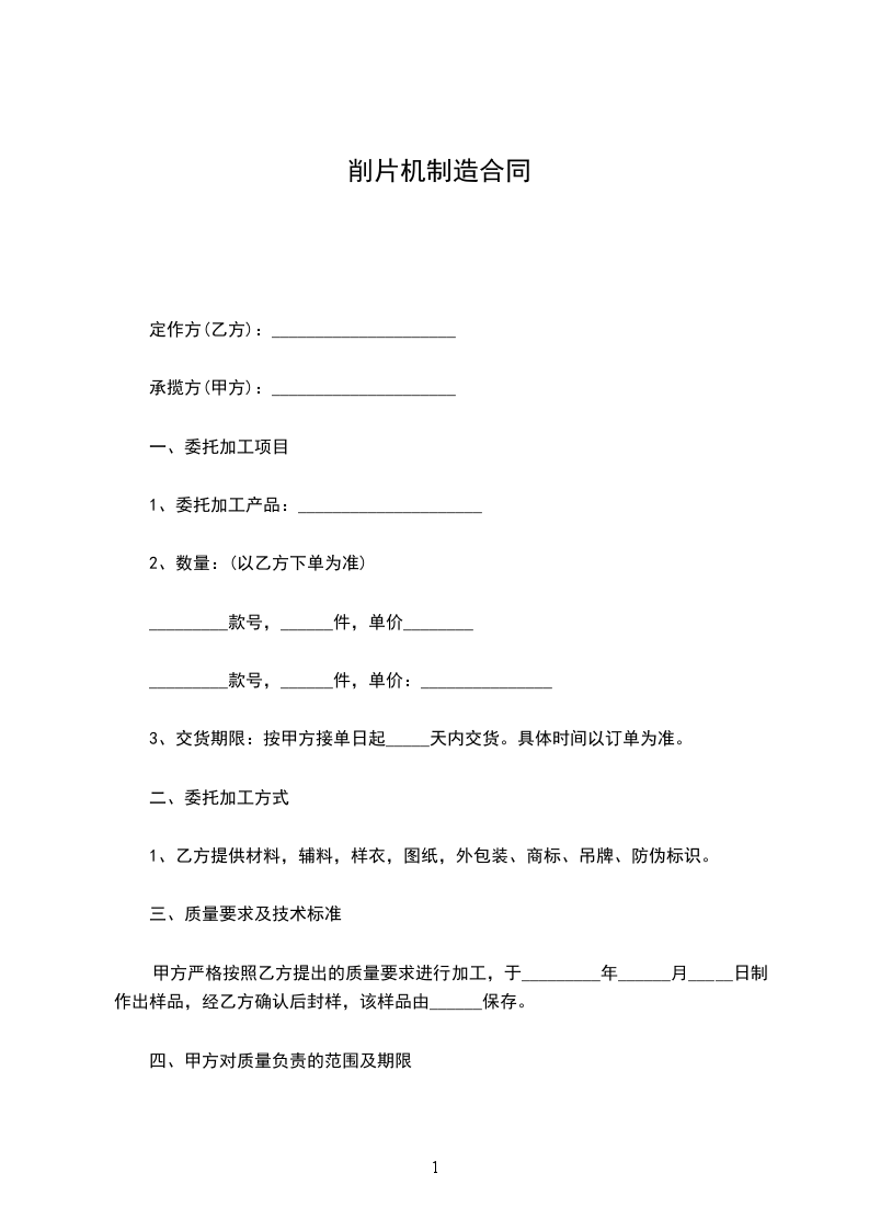 削片机制造合同