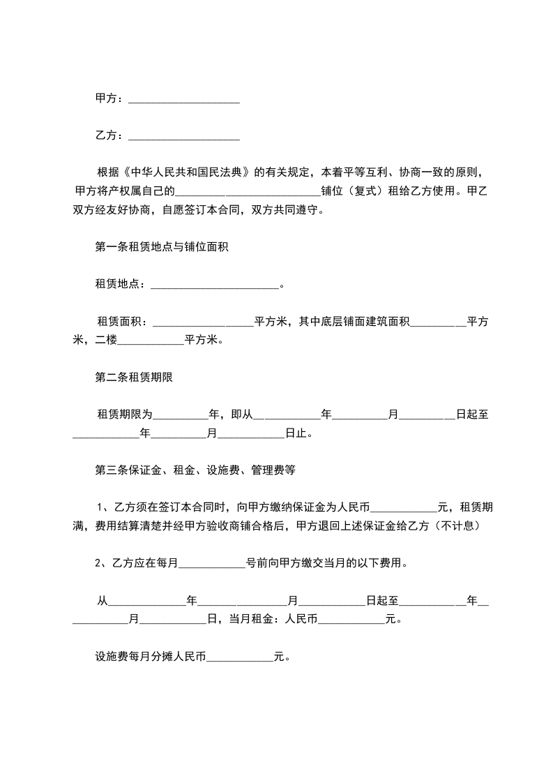 二、租金的结算与支付丙方与甲方原租赁合同,约定的租赁期间为一年,即自__________年__________月__________日起__________年__________月__________日止,月租金为__________元人民币,现甲方剩余租期为月,门面转让前尚欠租金、水电费、物业管理费等共计人民币__________元,上述欠交款项由乙方在本合同生效后三日内支付给甲方。门面转让乙方后,甲、丙双方原门面租赁合同中所约定的租金转由乙方根据该合同约定(指有关金额、时间、付款方式和违约责任等条款)向丙方支付,甲方不再负有支付义务。
