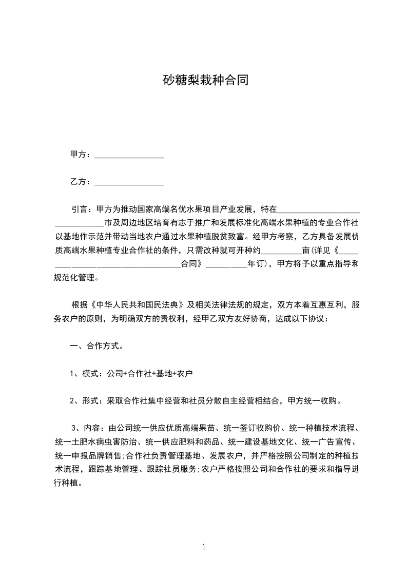 1、合同期内甲方集体按果园土地面积所收费用由乙方经营所需需用由乙方承担支付。