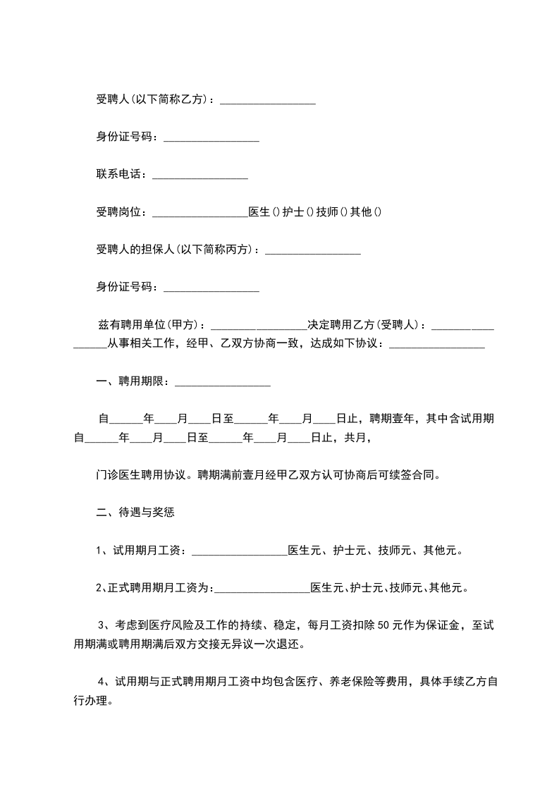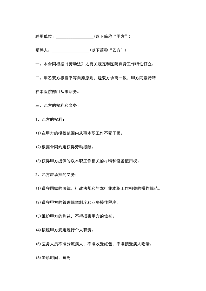 门诊医生聘用协议。聘期满前壹月经甲乙双方认可协商后可续签合同。