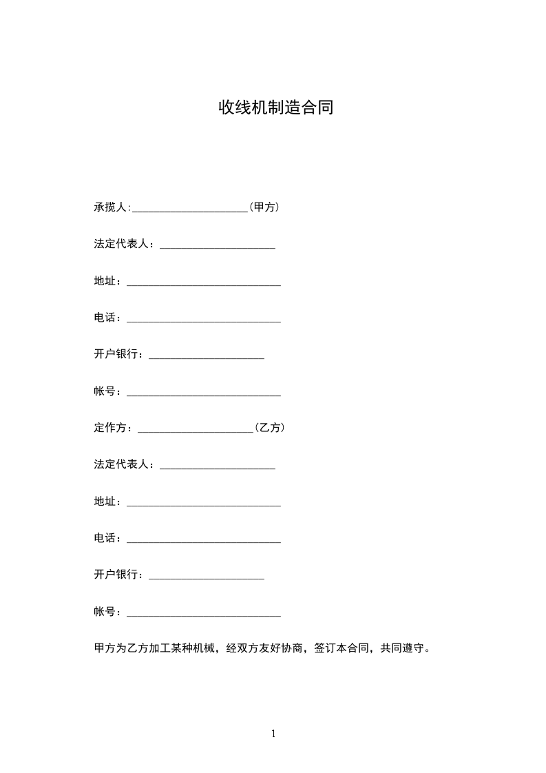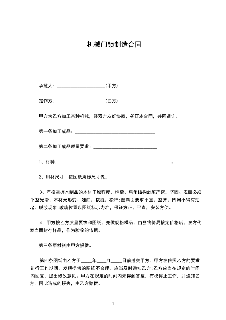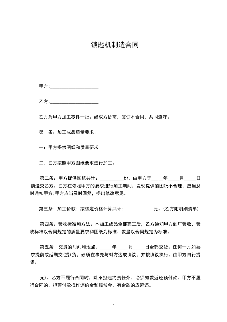 甲方为乙方加工某种机械,经双方友好协商,签订本合同,共同遵守。