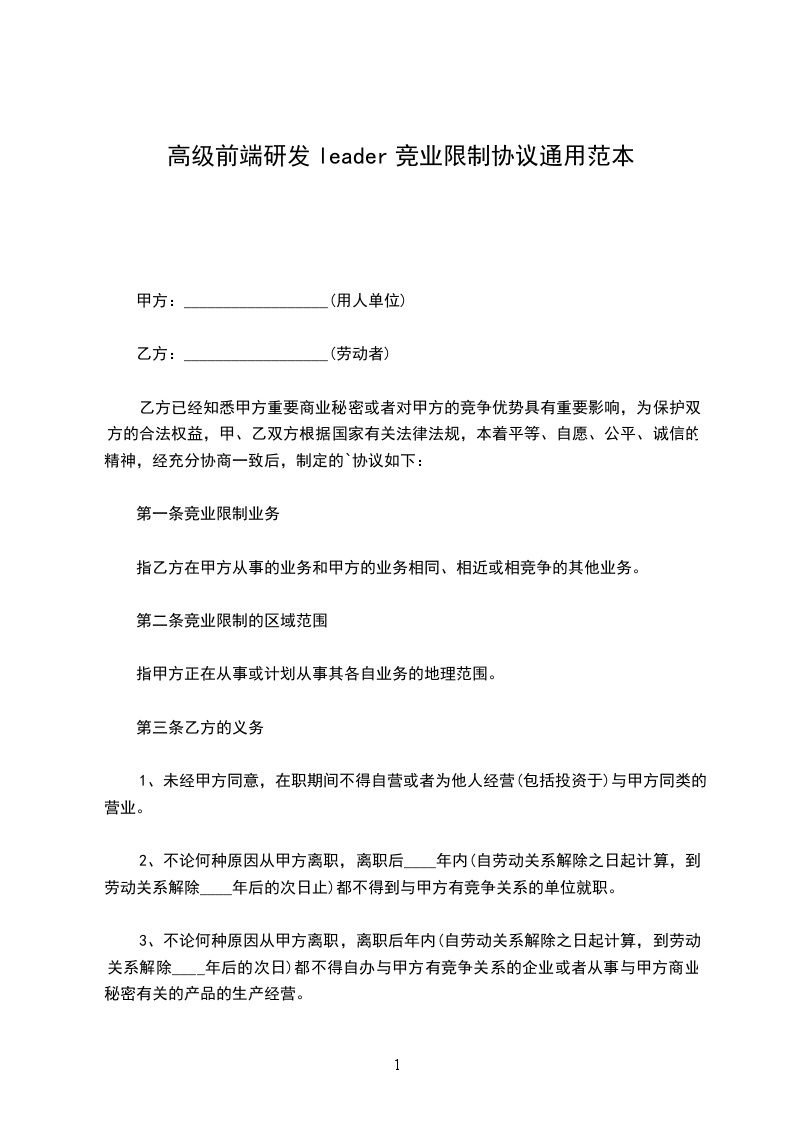 内容运营leader竞业限制协议