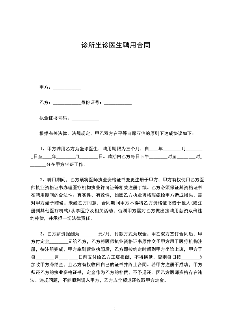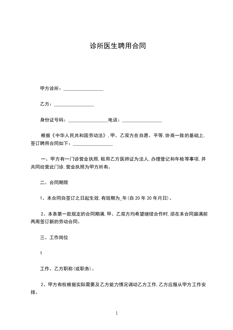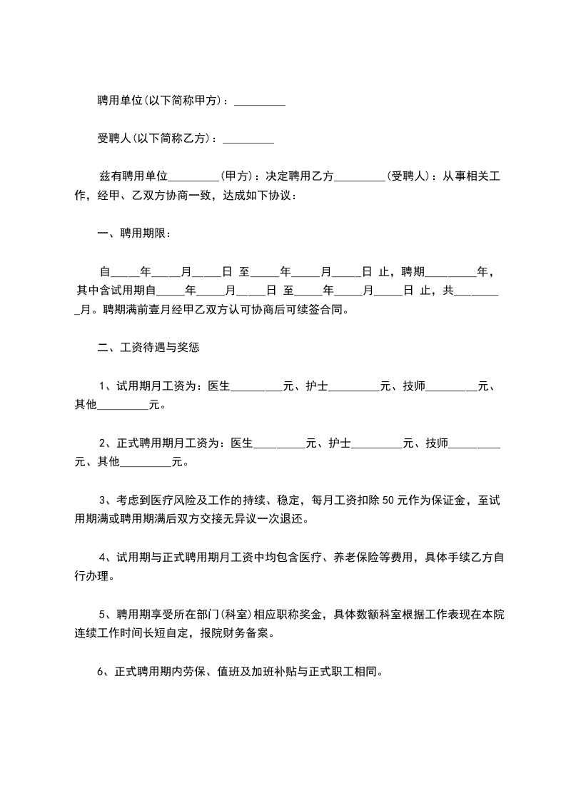 五、工作时间:_________________甲方根据诊所医疗工作特点,规定乙方的工作时间,每天工作时间根据需要具体安排,每天工作8小时,每周休息一天。