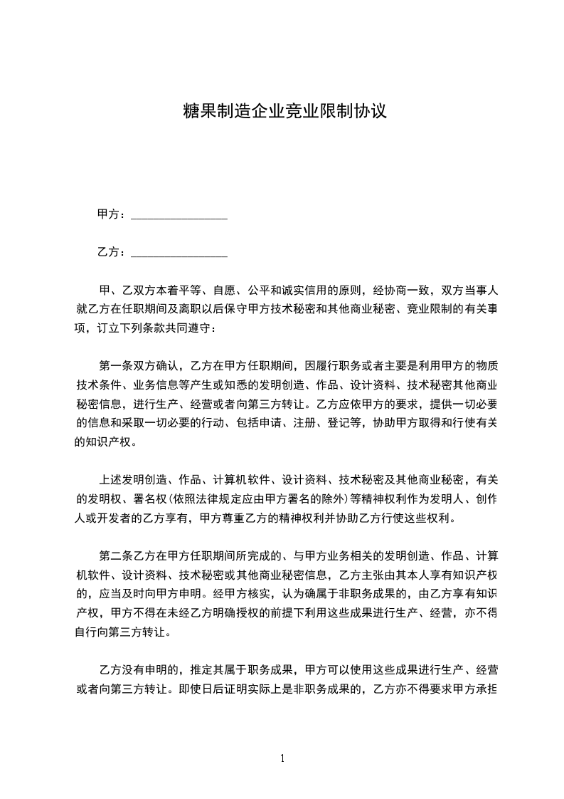 甲、乙双方本着平等、自愿、公平和诚实信用的原则,经协商一致,双方当事人就乙方在任职期间及离职以后保守甲方技术秘密和其他商业秘密、竞业限制的有关事项,订立下列条款共同遵守: