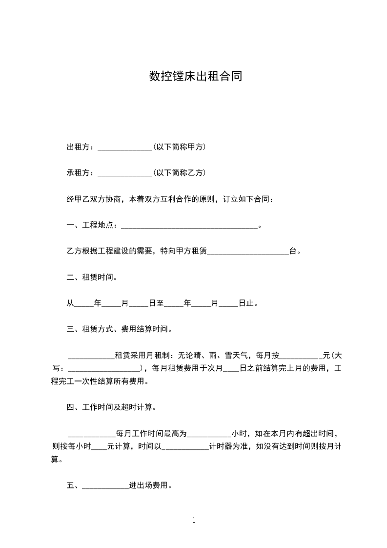 数控锯床出租合同