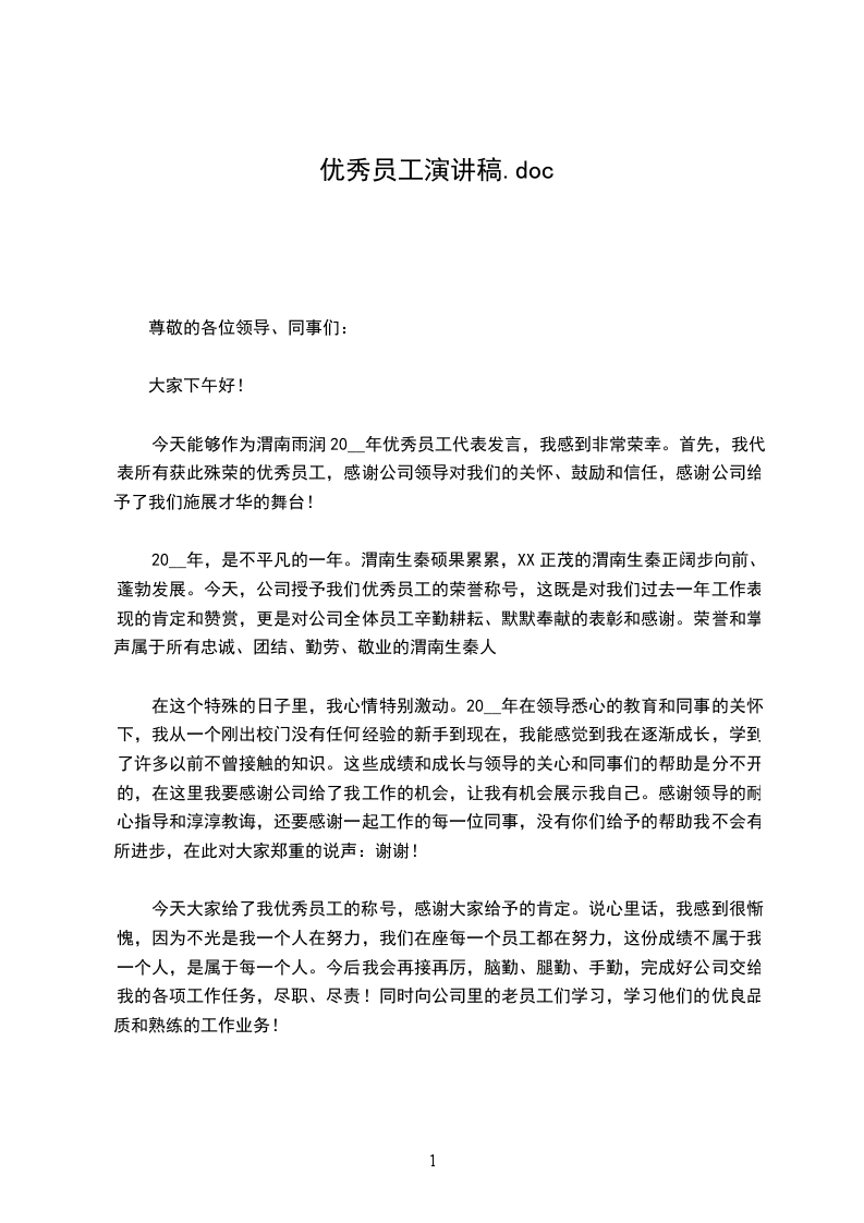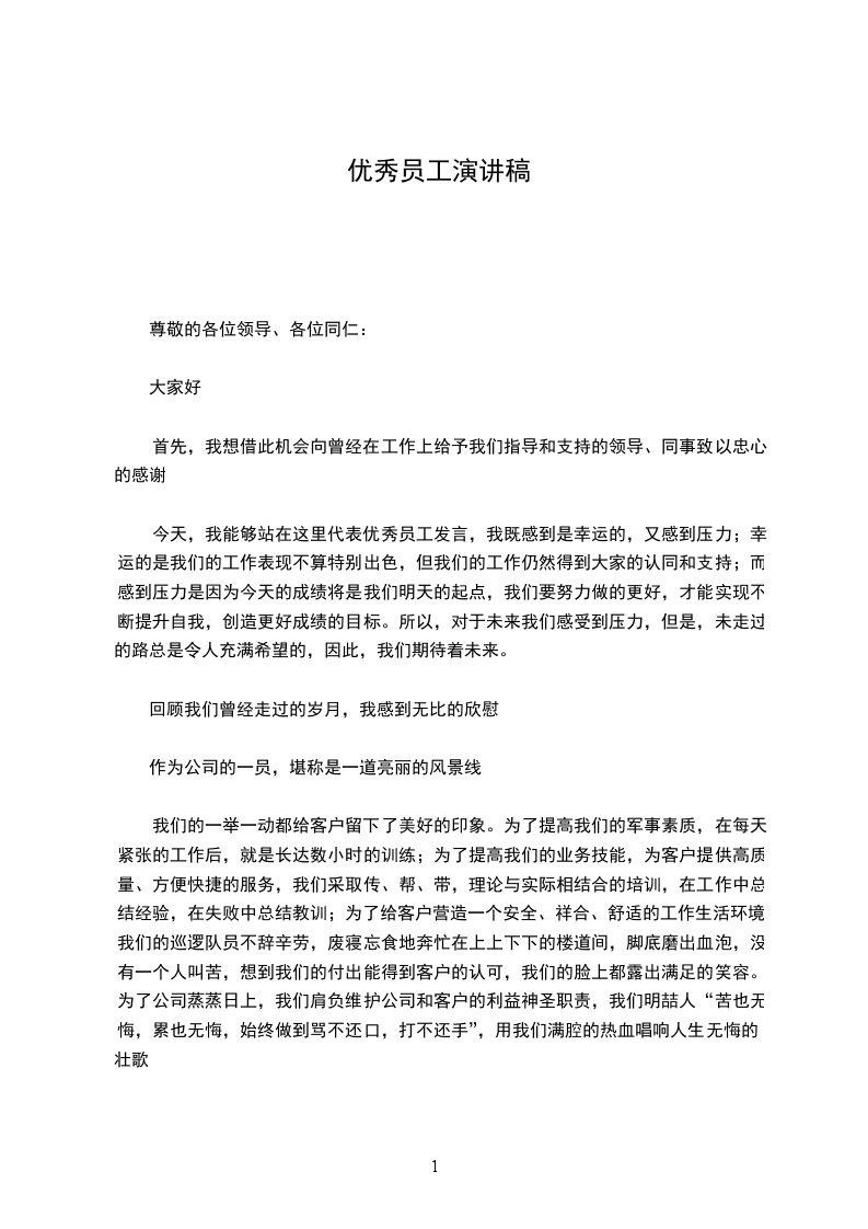 今天,我能够站在这里代表优秀员工发言,我既感到是幸运的,又感到压力;幸运的是我们的工作表现不算特别出色,但我们的工作仍然得到大家的认同和支持;而感到压力是因为今天的成绩将是我们明天的起点,我们要努力做的更好,才能实现不断提升自我,创造更好成绩的目标。所以,对于未来我们感受到压力,但是,未走过的路总是令人充满希望的,因此,我们期待着未来。