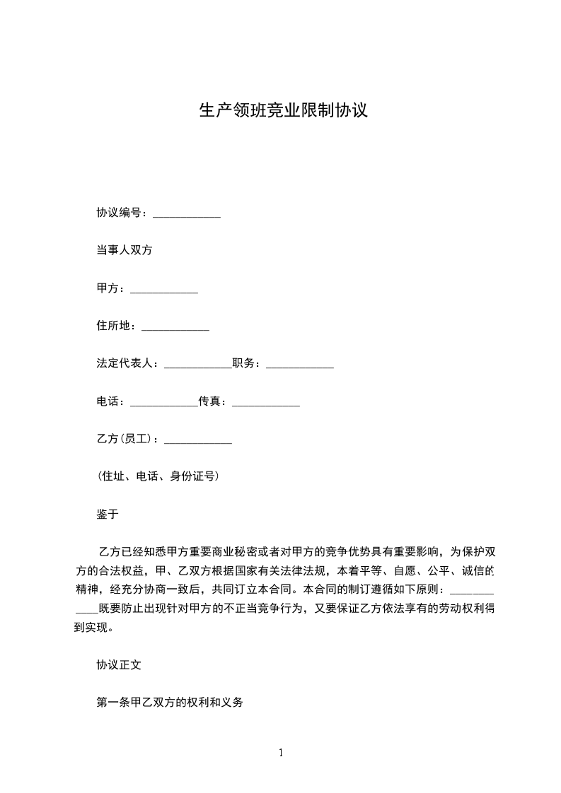 乙方已经知悉甲方重要商业秘密或者对甲方的竞争优势具有重要影响,为保护双方的合法权益,甲、乙双方根据国家有关法律法规,本着平等、自愿、公平、诚信的精神,经充分协商一致后,共同订立本合同。本合同的制订遵循如下原则:____________既要防止出现针对甲方的不正当竞争行为,又要保证乙方依法享有的劳动权利得到实现。