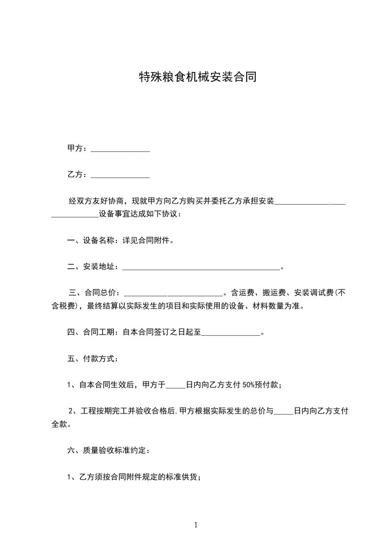 特殊粮食机械制造合同