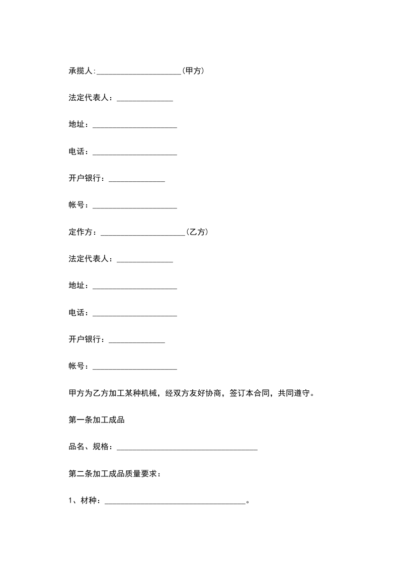 甲方为乙方加工某种机械,经双方友好协商,签订本合同,共同遵守。