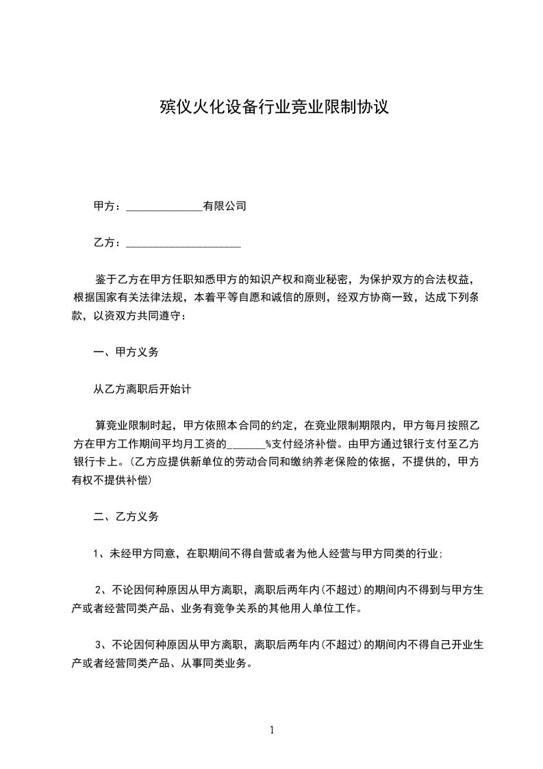 1、未经甲方同意,在职期间不得自营或者为他人经营(包括投资于)与甲方同类的营业。