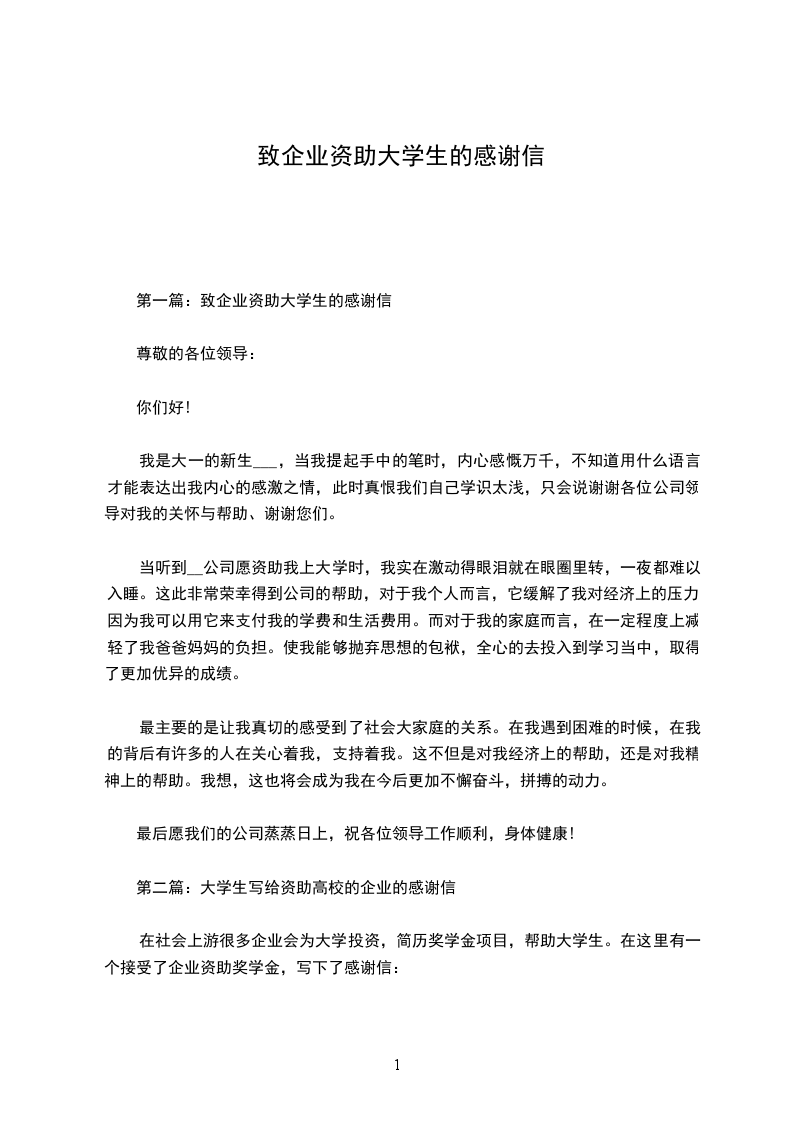 查看《大学生写给资助高校的企业一封感谢信》原文链接: