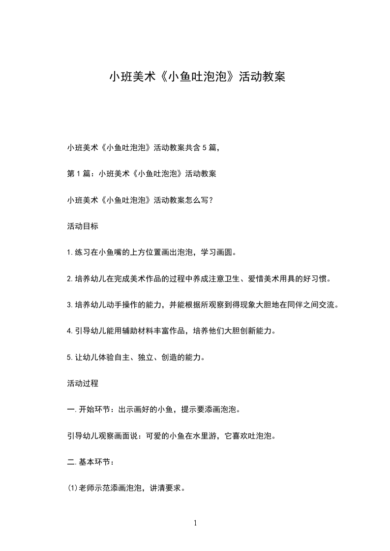 小班美术《小鱼吐泡泡》活动教案共含5篇,