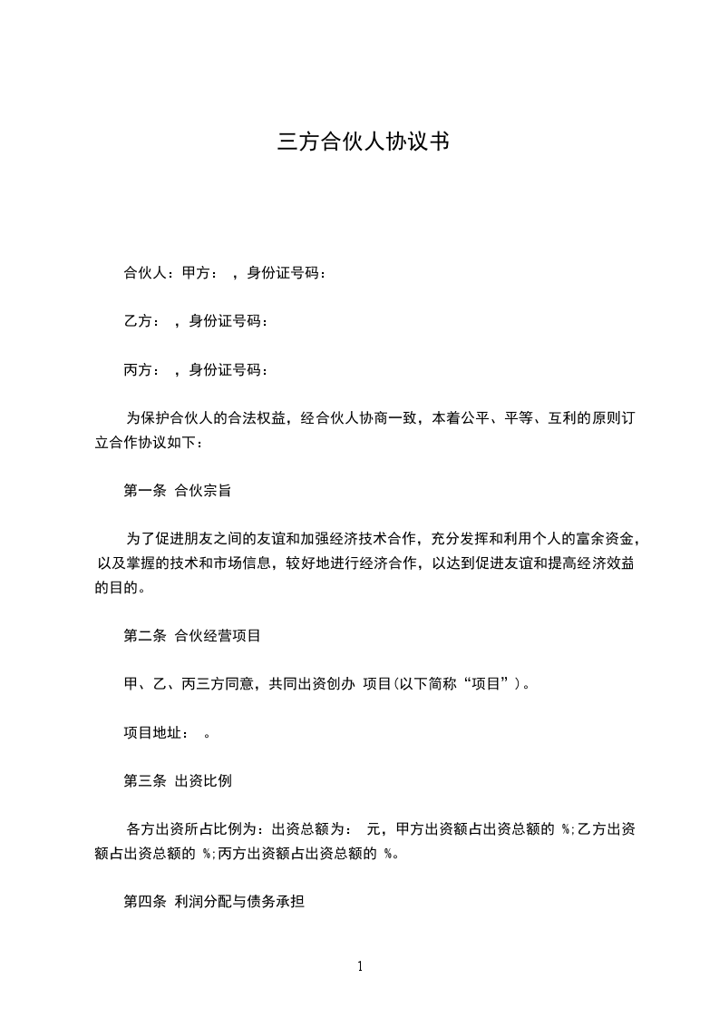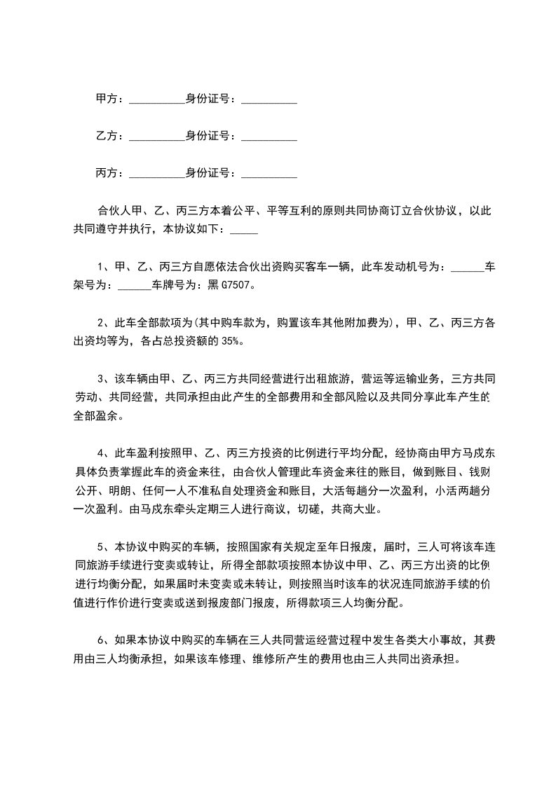 第十条本协议正本壹式叁份,合伙人各执壹份。
